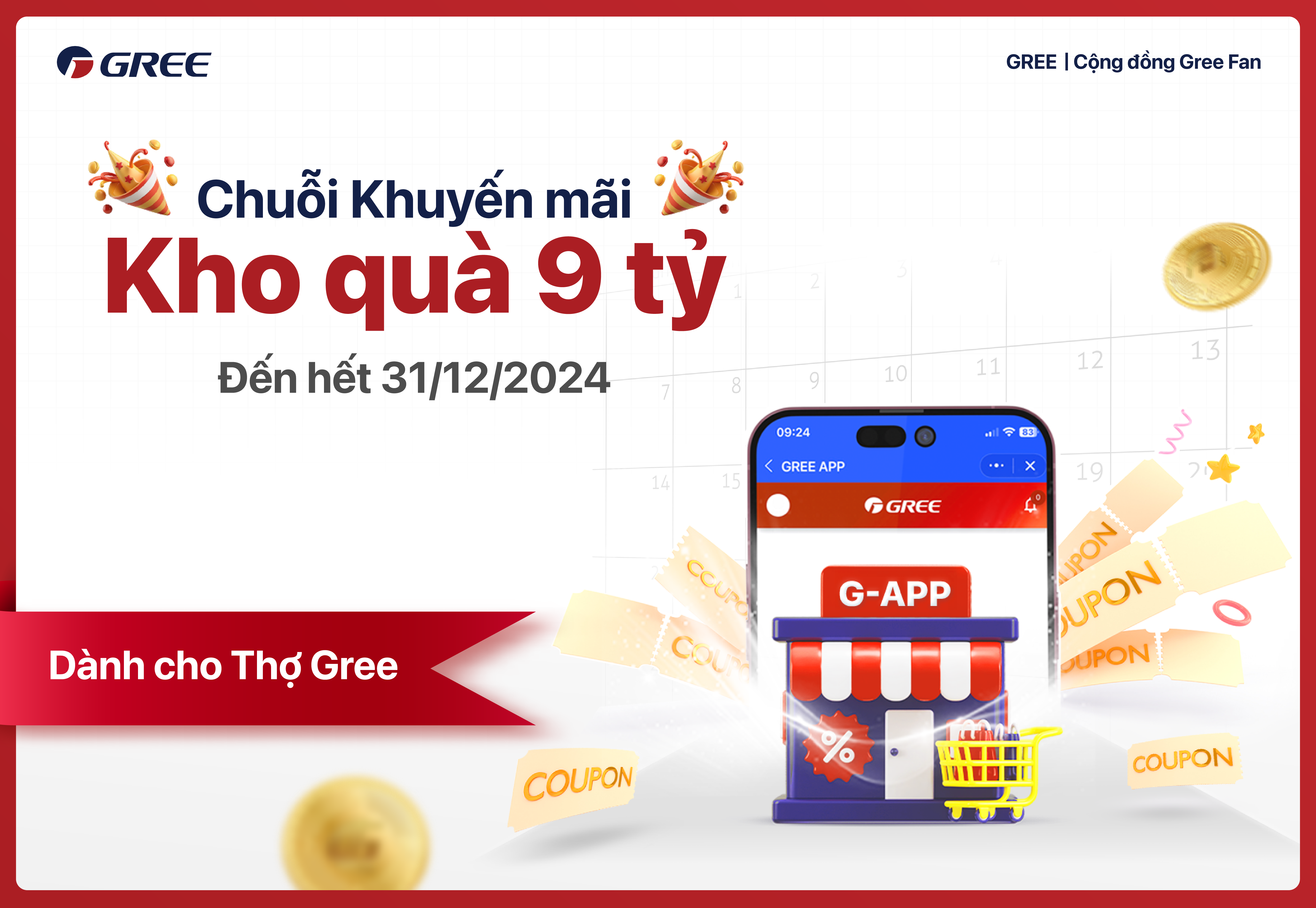 Với chuỗi khuyến mãi Kho quà 8 tỷ, Gree tặng thưởng x2 G-Coin, không giới hạn lượt tham gia nhiệm vụ dành cho Thợ kỹ thuật Gree khi thực hiện nhiệm vụ Kích hoạt bảo hành trên G-App. Cách thức tham gia đơn giản, khuyến mãi cập nhật liên tục. Mời ACE đọc thêm chi tiết bên dưới.