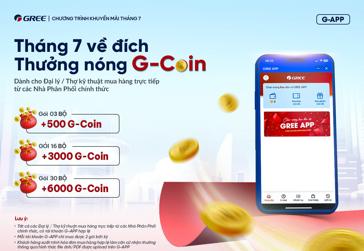 Trong chuỗi khuyến mãi Kho quà 9 tỷ, hàng ngàn quà tặng hấp dẫn Gree dành cho Đại lý khi thực hiện nhiệm vụ trên G-App. Chỉ cần mua từ 6 bộ Điều hoà trở đi, ACE có tài khoản G-App hợp lệ đã có thể tham gia nhận quà từ Kho quà. Cách thức tham gia đơn giản, khuyến mãi cập nhật liên tục. Mời ACE đọc thêm chi tiết bên dưới.
